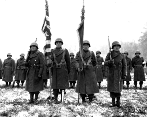 Members of the 442nd Regimental Combat Team receiving their citations in France in 1944.