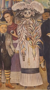 Calavera Catrina as seen in Diego Rivera’s Dream of a Sunday Afternoon in the Alameda. Courtesy of Wikimedia Commons.
