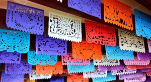Papel picado, or perforated paper, is prevalent throughout Mexican culture. According to tradition, the art form originated with an Aztec tradition of chiseling spirit figures into wood. It is specifically used during Day of the Dead celebrations by stringing them on the altars and in the streets.