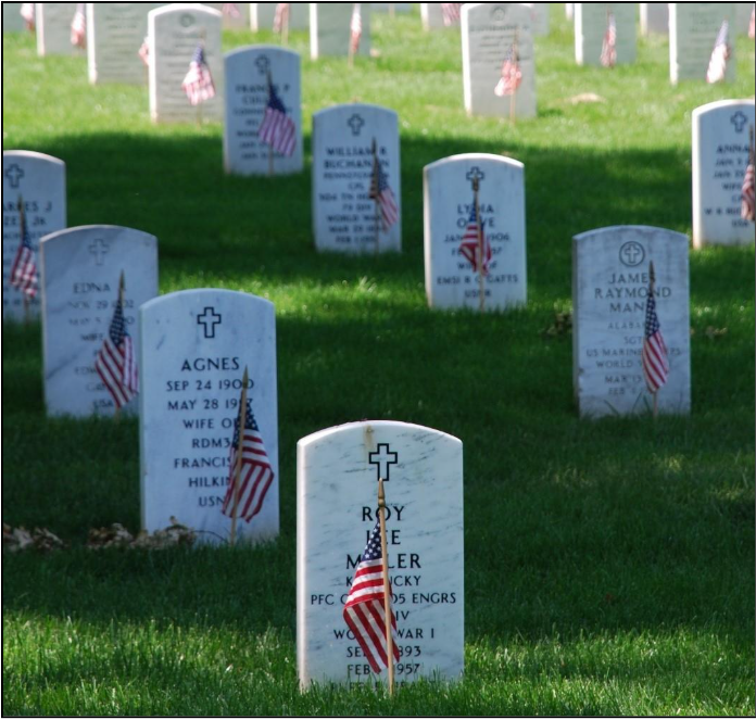 Flags placed at headstones, Arlington National Cemetery, Memorial Day 2008. Wikimedia Commons.