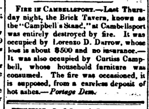 “Fire in Cambellsport,” Western Reserve Chronicle (Warren, Ohio), 16 January 1856, p. 3; GenealogyBank (https://www.genealogybank.com/: accessed 27 January 2026).